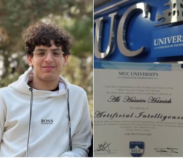 الدبلوم الجامعي في الذكاء الاصطناعي لاصغر طالب في لبنان علي حسين حميّة