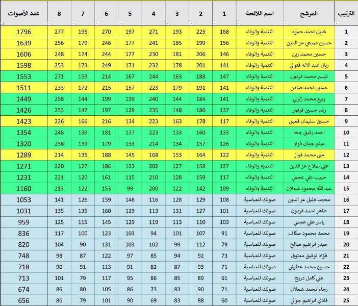 حسين خليل 1427 محمد جعفر. 1421 علي زلزلي. 1331 قاسم عزالدين 927 علي عجمي 852 معين فردون. 821 حسن حمود. 687 احمد جوني 510 حسين قعيق 211 كمال شعلان 204 يا أهل العباسية يا أهل بلدتنا الكريمة أنا المرشح الاختياري محمد حسين جعفر ابن عميد المخاتير حسين جعفر رحمه الله أوضح انني مرشح توافقي مع جميع الاطراف في …