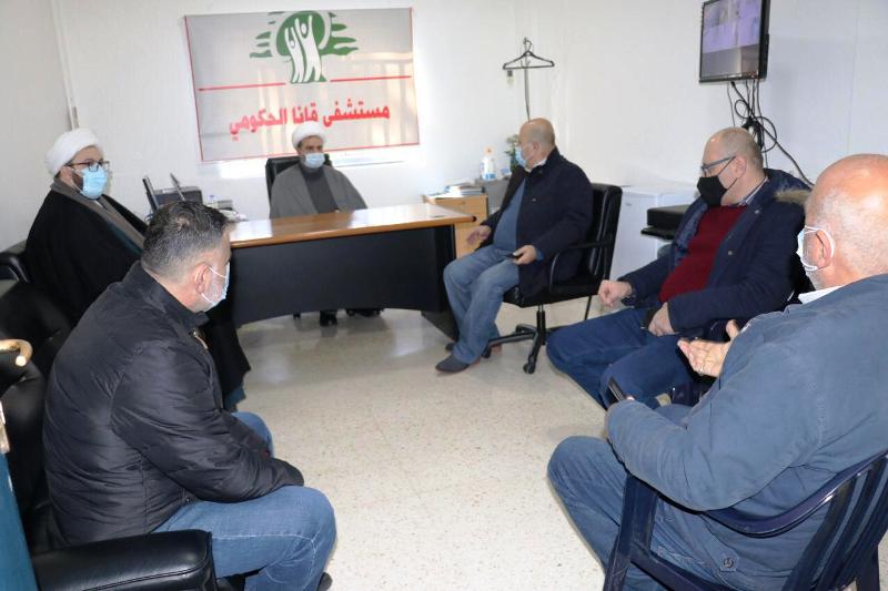 ثم انتقل المفتي عبدالله والوفد الى مستشفى قانا الحكومي وكان بإستقبالهم مدير المستشفى الدكتور محمد صايغ، وشرح صايغ للوفد حاجيات عن قدرات المستشفى ليكون في خدمة المرضى لاسيما مرضى قسم العناية الفائقة الخاص بمرضى فيروس الكورنا.