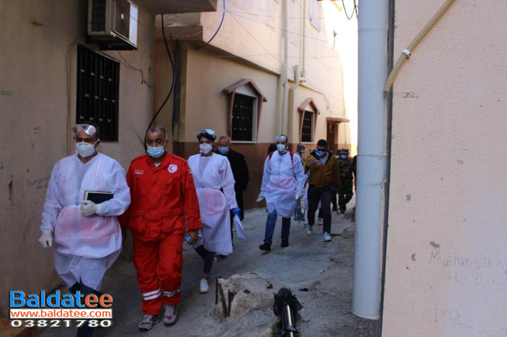 بعد استكماله زيارة المصابين واجراءه لمئات الفحوصات لمخالطين في مخيم عين الحلوة، وتنفيذاً لخطة الطوارئ التى وضعتها القيادة الفلسطينية بالتعاون مع جمعية الهلال الأحمر الفلسطيني ومستشفى الشهيد محمود الهمشري لمواجهة انتشار فيروس كورونا في المخيمات والتجمعات الفلسطينية في لبنان والتي أعلن عنها الدكتور رياض أبو العينين مدير عام مستشفى الشهيد محمود الهمشري منذ أيام.
