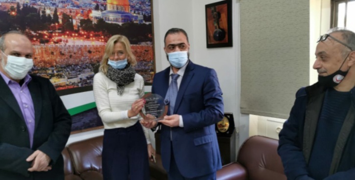 كما وشكر الدكتور رياض الدكتورة Merit على جهودها التي بذلتها طيلة الفترة السابقة وقدم لها درعاً بإسم الإدارة والطاقم الطبي . وخلال التكريم تم الإتصال بسفير دولة فلسطين أشرف دبور الذي بدوره ثمن جهود الدكتورة Helmin في تدريب الطاقم الطبي والتمريضي في مستشفى الهمشري .