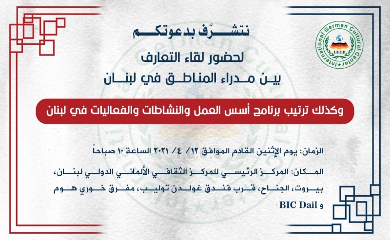 عقد المركز الثقافي الألماني الدولي إجتماعاً موسعاً على مستوى مدراء المكاتب في المناطق اللبنانية كافة ، خُصِّص لوضع خطط وآليات عمل جديدة تواكب المستجدات ، مع تقييم آداء المرحلة الماضية ، خاصة في ظل إستمرار وباء كورونا في تقييد النشاطات والحركة.