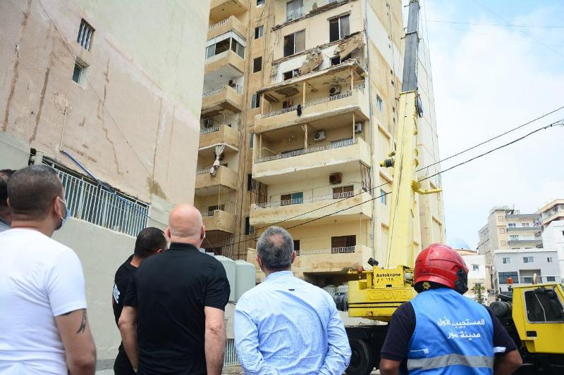 وقد عاين خريس الأضرار في المكان كما اطمأنّ على المواطنين القاطنين في المبنى، وأمِل من الفرق الهندسية التابعة للجيش اللبناني وبلدية صور الكشف على جميع الأبنية المهدَّدة بالسقوط في مدينة صور حفاظاً على سلامة الجميع، شاكراً كل الفرق والجمعيات التي ساهمت في عملية الإنقاذ بالأمس من الدفاع المدني اللبناني وجمعية كشافة الرسالة للإسعاف الصحي وكافة الفرق، مثنياً على جهود وحدة إدارة الكوارث في اتحاد بلديات قضاء صور ومتابعة بلدية صور لعملية إزالة الردم ومتابعة موضوع التعويض على المتضررين من الحادثة.