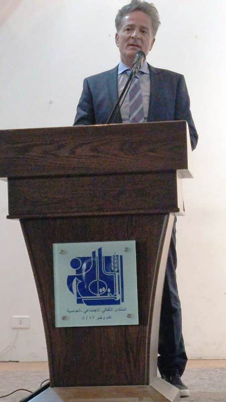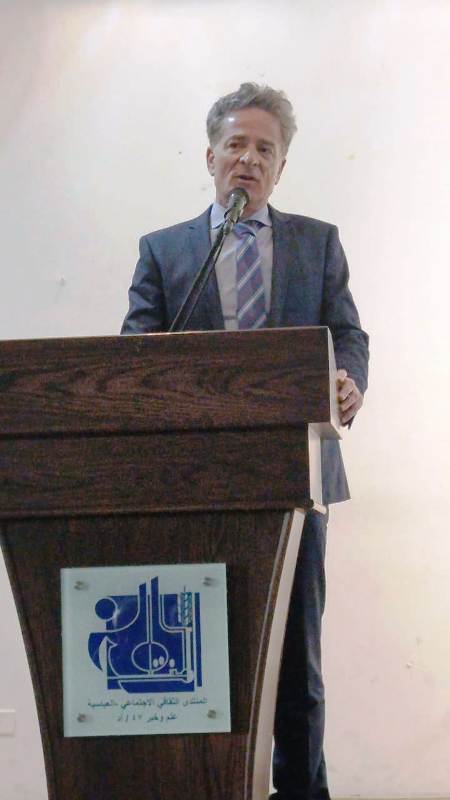 ألقى الدكتور محمد حمود كلمة المنتدى الثقافي ومن ثمّ محاضرة نوعية للدكتور جرادة وأسئلة وحوار مع الحاضرين.