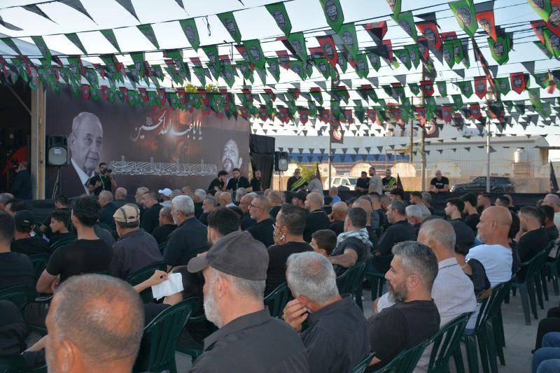 بعد تلاوة آيات من الذكر الحكيم بصوت القارئ علي الصباغ وتقديم من المسؤول الإعلامي لإقليم جبل عامل علوان شرف الدين، كانت السيرة الحسينية مع عميد المنبر الحسيني السيد نصرات قشاقش.