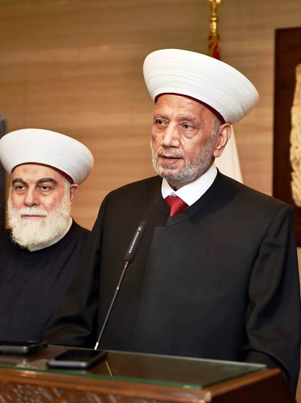 وختم المفتي : أسأل الله سبحانه وتعالى وبعد لقائي مع فخامة الرئيس ودولة رئيس مجلس النواب ومنذ يومين مع دولة رئيس مجلس الوزراء أن يجنب لبنان كل المخاطر والأزمات وأن ينعم اللبنانيون إن شاء الله بالأمن والإستقرار والسلام والسلامة بإذن الله تعالى .