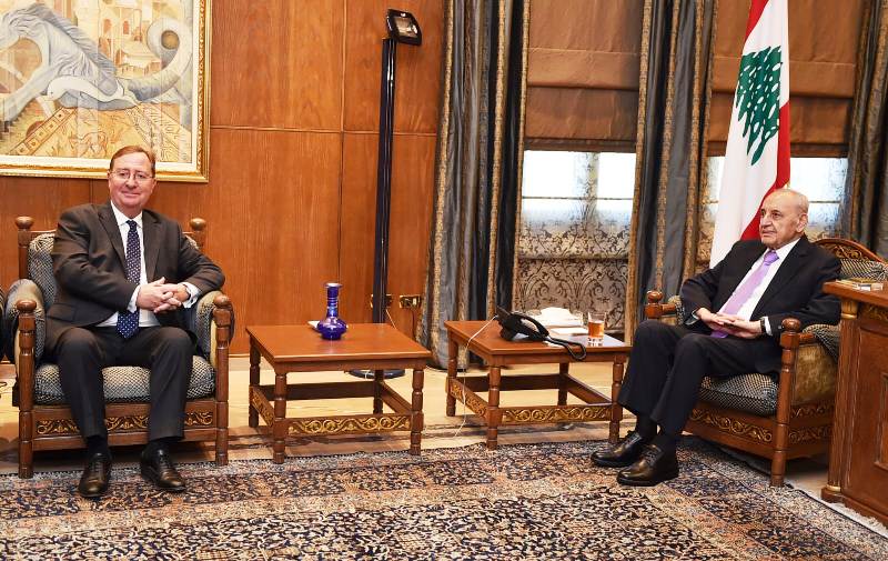 وكان الرئيس بري قد تابع الأوضاع والمستجدات والعلاقات الثنائية بين لبنان والمملكة المتحدة وذلك خلال إستقباله السفير البريطاني لدى لبنان هاميش كاول .