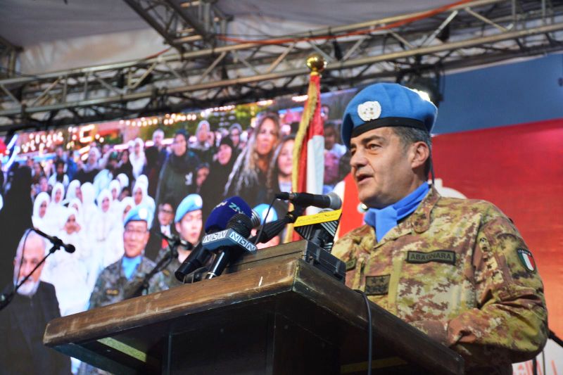 ثم كانت كلمة القائد العام لليونيفل الجنرال ديوداتو ابانيارا رحّب فيها بالجميع، معبّراً عن فرحته بحضور الاطفال والنساء ، وأكّد أن هذه المبادرة تُظهر ان السلام يمكن أن يتحقق اذا عملنا جميعا معاً، فالميلاد يوم للسلام والاجتماع والايمان و إن السلام والامن والامان هو الأهم من أجل مستقبل أفضل.